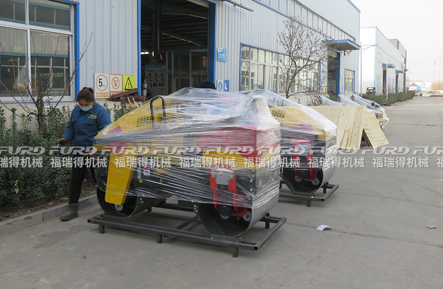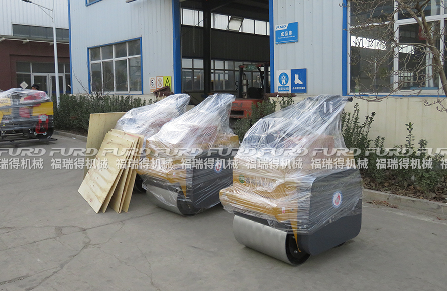 1月18日,狗子28 机械3台手扶双轮压路机和两台座驾压路机打包装箱出口新加坡。