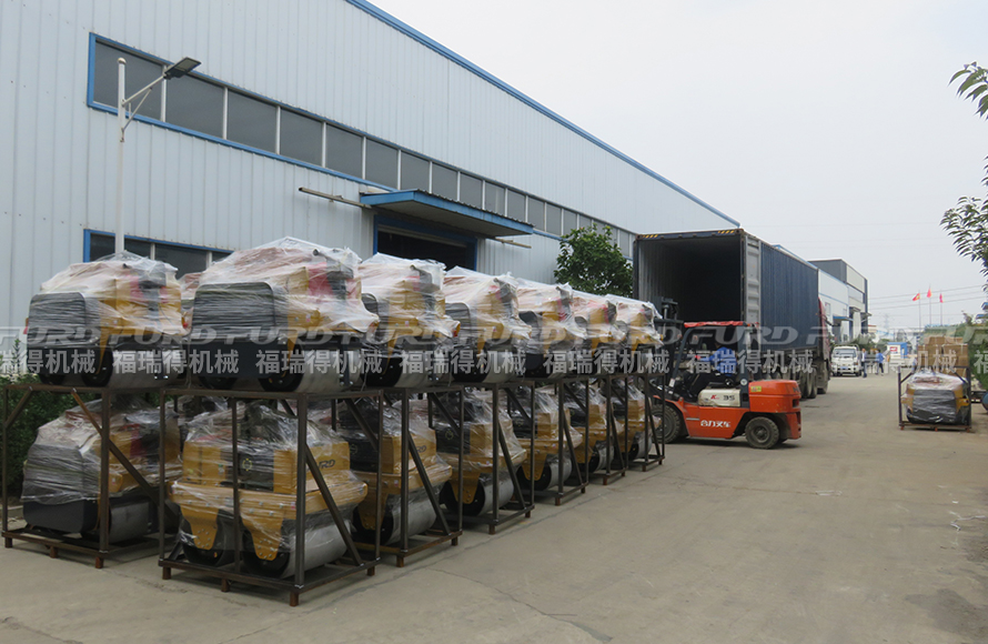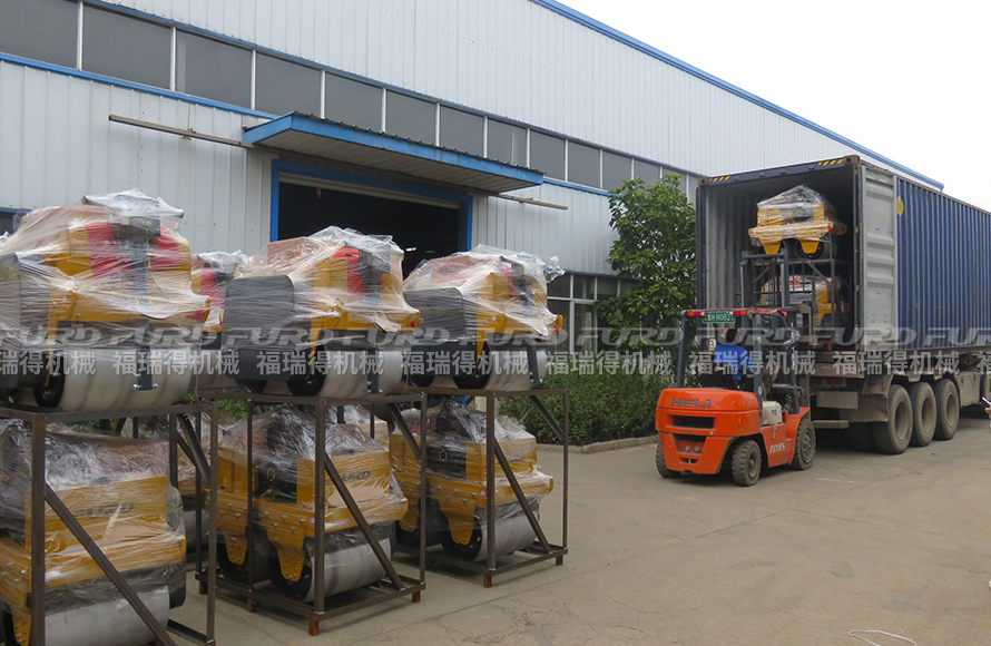 机械46台手扶双钢轮压路机装车出口墨西哥。