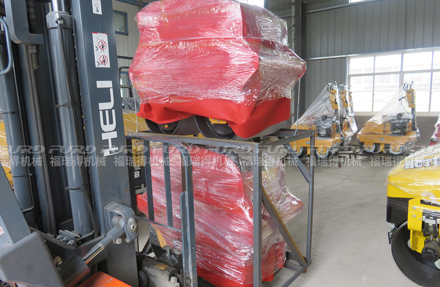 1月7日 狗子28 16台手扶双钢轮小型压路机打包装车发往湖北省,狗子28 机械研发生产的手扶双钢轮压路机作业半径小,可在狭小的区域内工作,转向方便。主要用于沟渠基础,道路,体育场地的压实整平,也可用于压实沥青表面的作业。采用品牌动力发动机,性能优越,启动容易,使用寿命长。