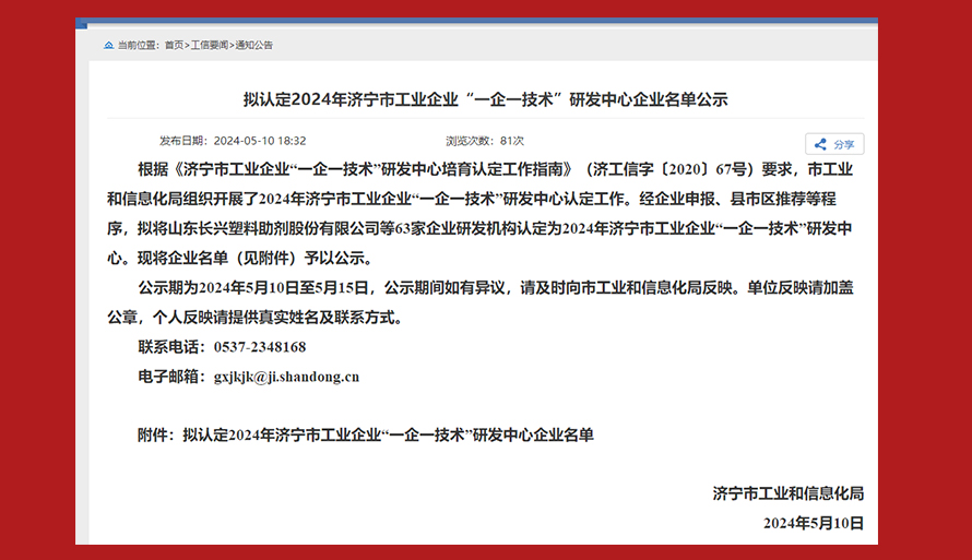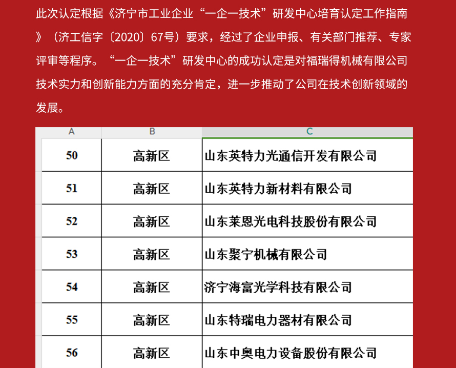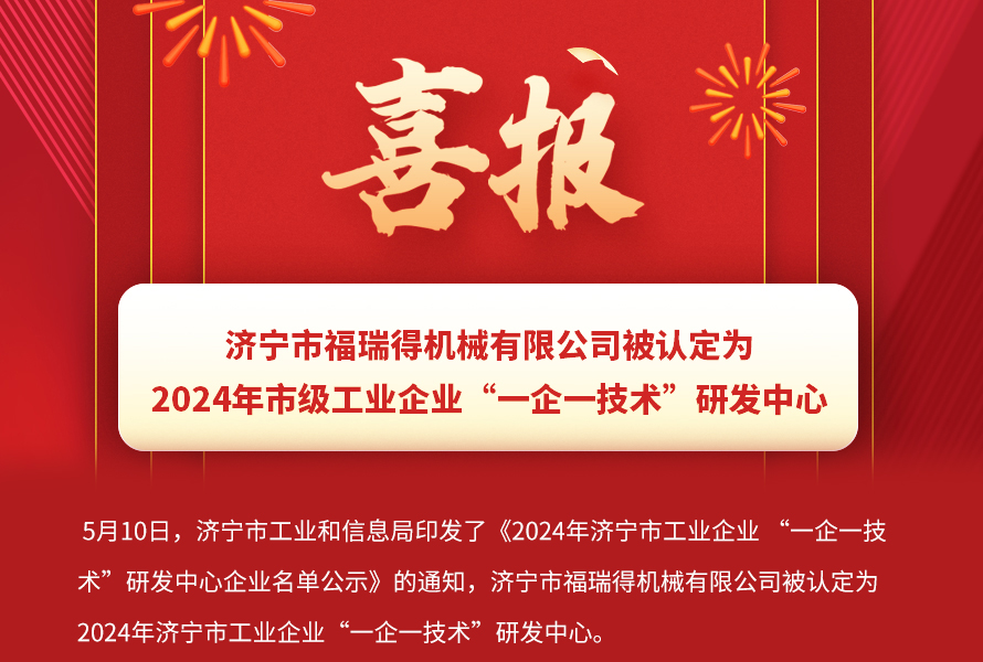 被认定为市级工业企业“一企一技术”研发中心