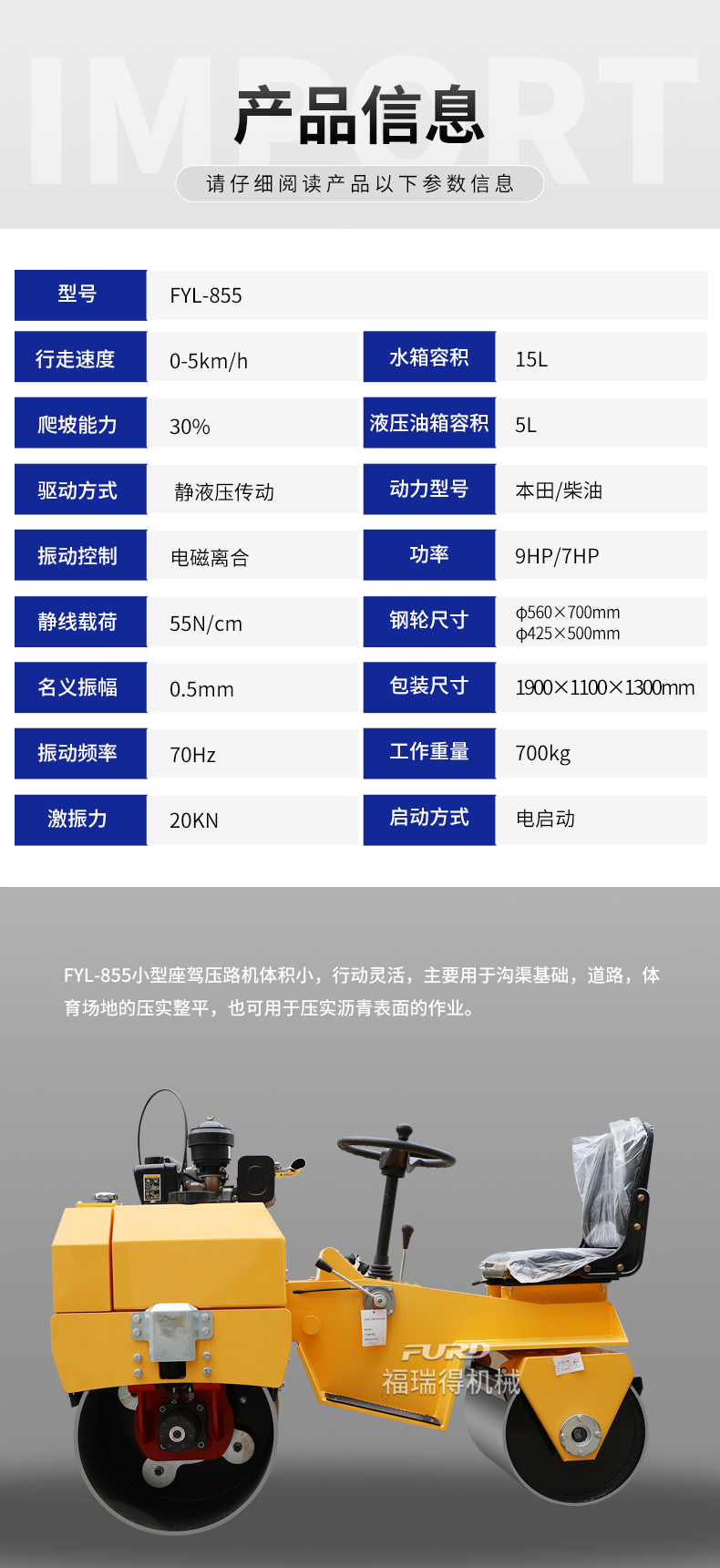 FYL-855 小型液压振动压路机
