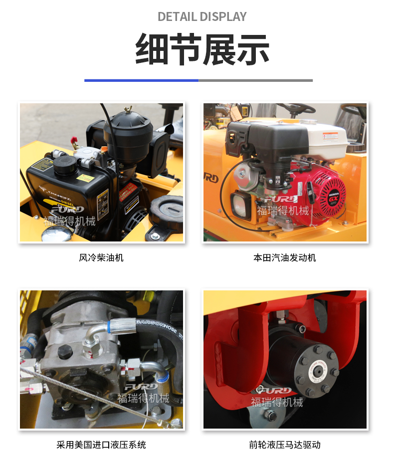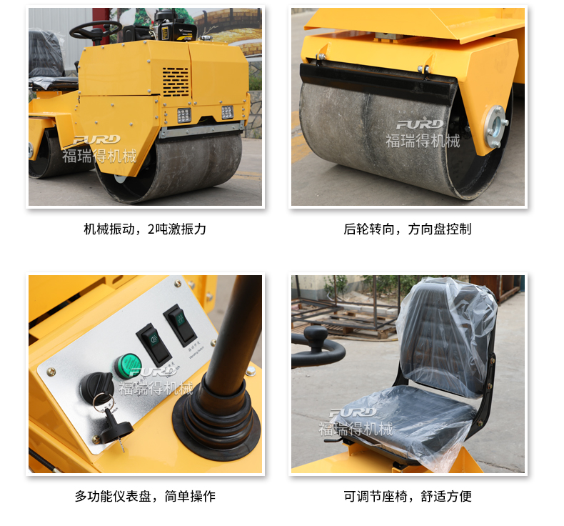 主要用于沟渠基础,道路,体育场地的压实整平,也可用于压实沥青表面的作业。