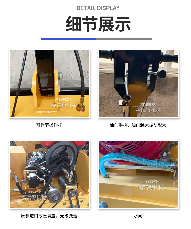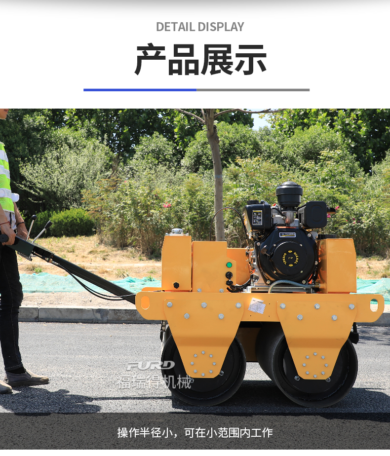 主要用于沟渠基础,道路,体育场地的压实整平,也可用于压实沥青表面的作业。