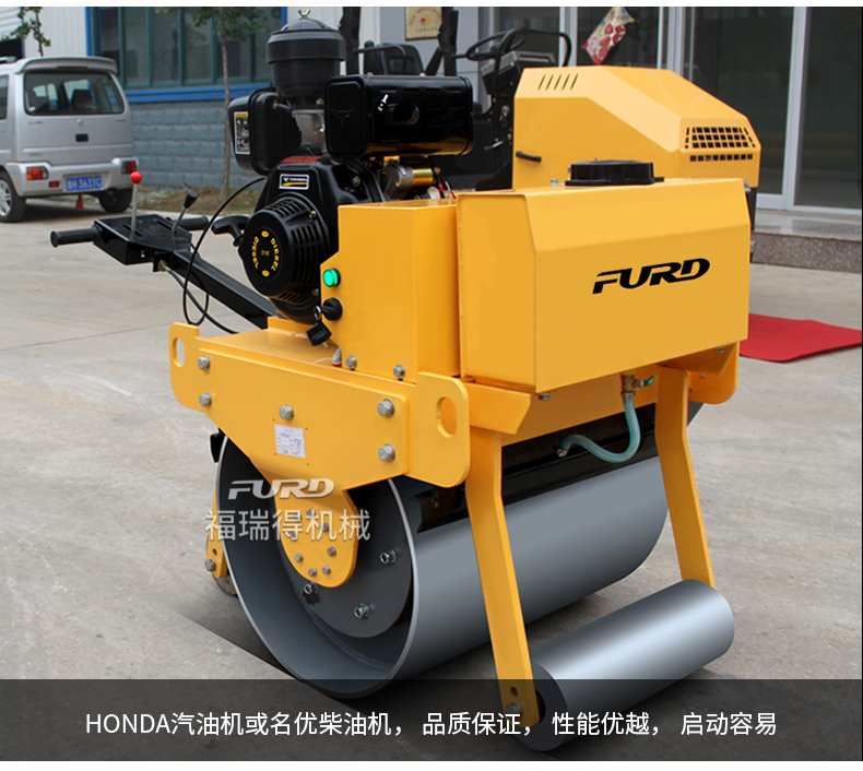 主要用于沟渠基础,道路,体育场地的压实整平, 也可用于压实沥青表面的作业。