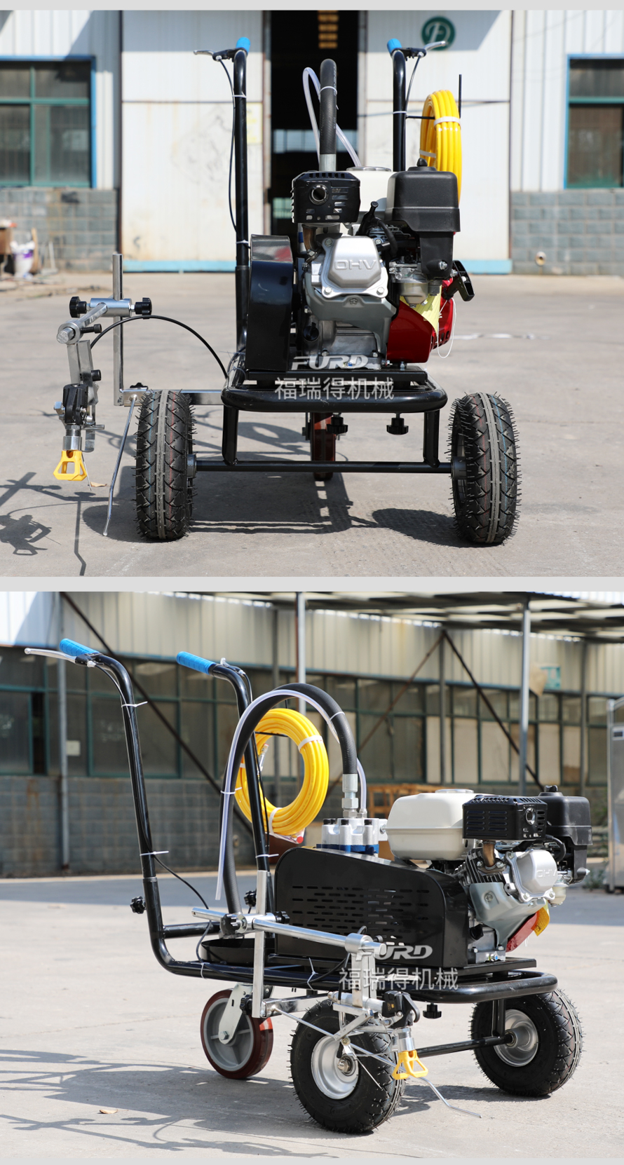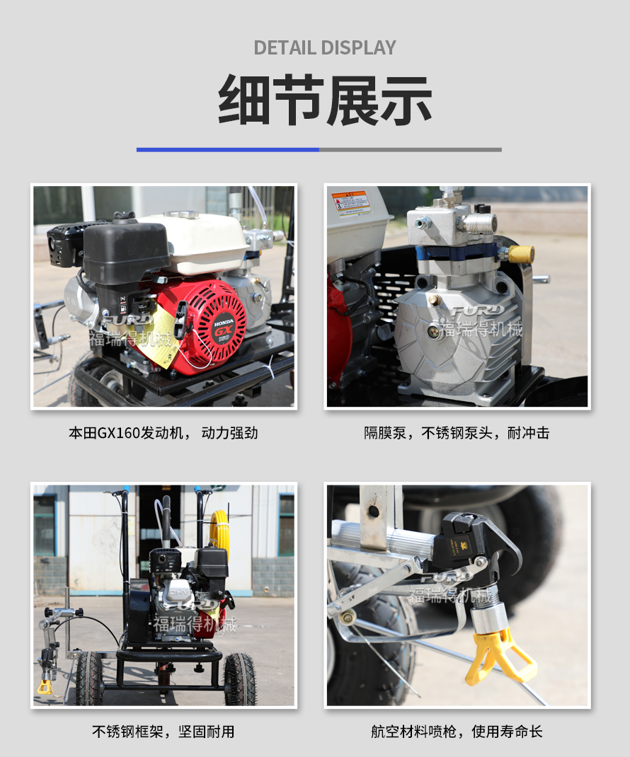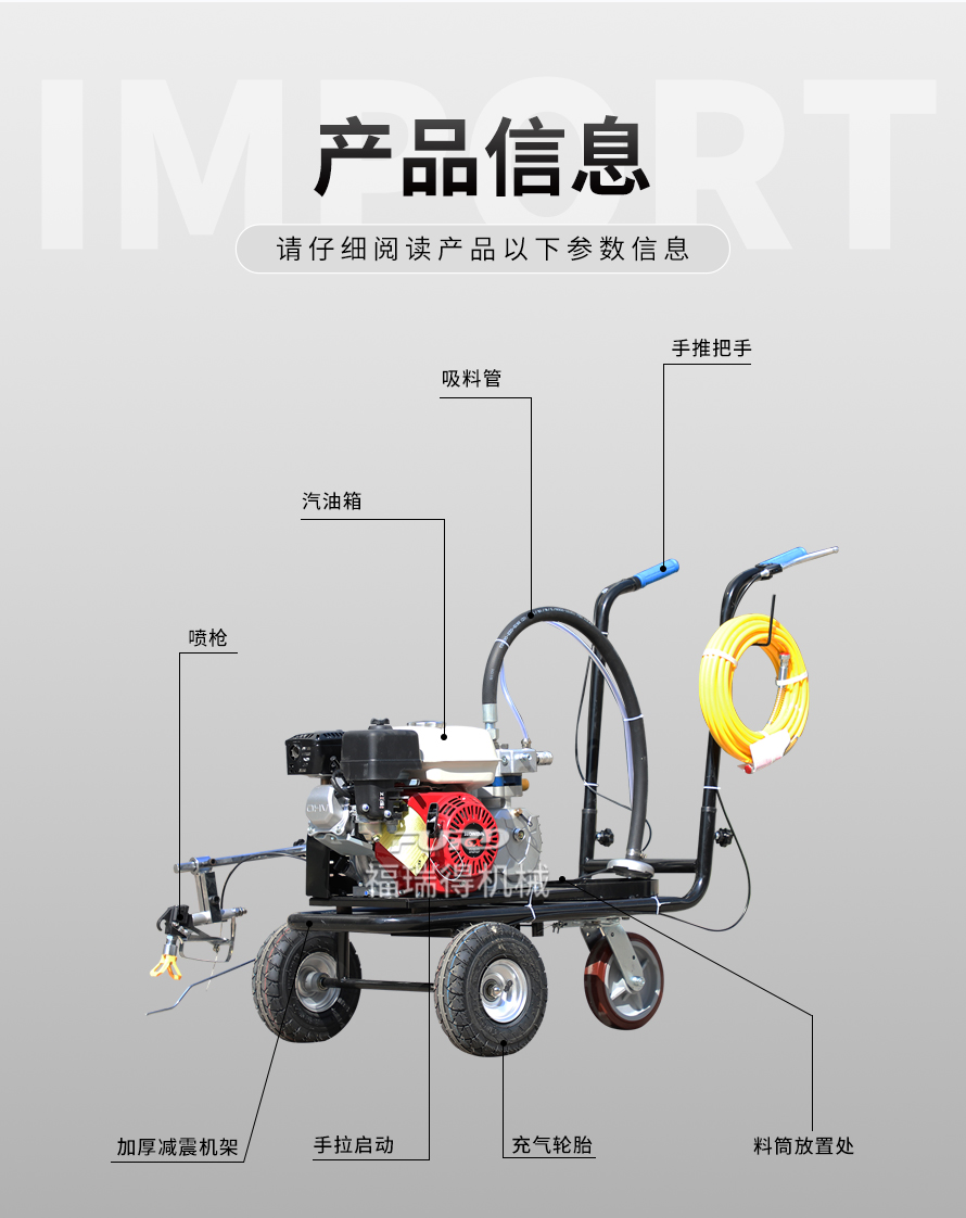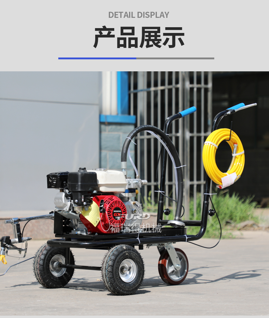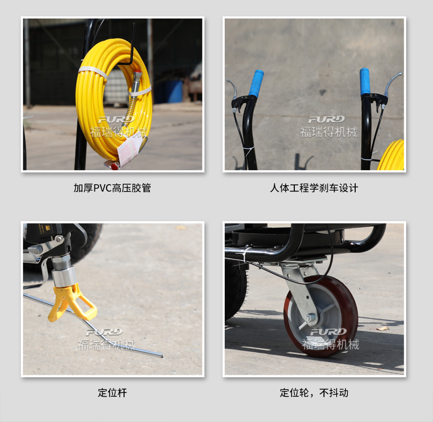 小型手推式道路划线机是一种在道路、停车场、广场和跑道等平整地面上划出不同约束、指引和警示等规则限制标志的路面施工机械。最常见的就是在马路上划斑马线,在路上划车库线、停车线等等应用于小型工程、短途施工,活动方便,灵活操作。