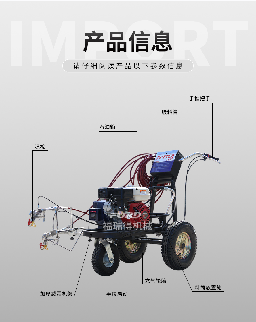 小型手推式道路划线机是一种在道路、停车场、广场和跑道等平整地面上划出不同约束、指引和警示等规则限制标志的路面施工机械。最常见的就是在马路上划斑马线,在路上划车库线、停车线等等应用于小型工程、短途施工,活动方便,灵活操作。