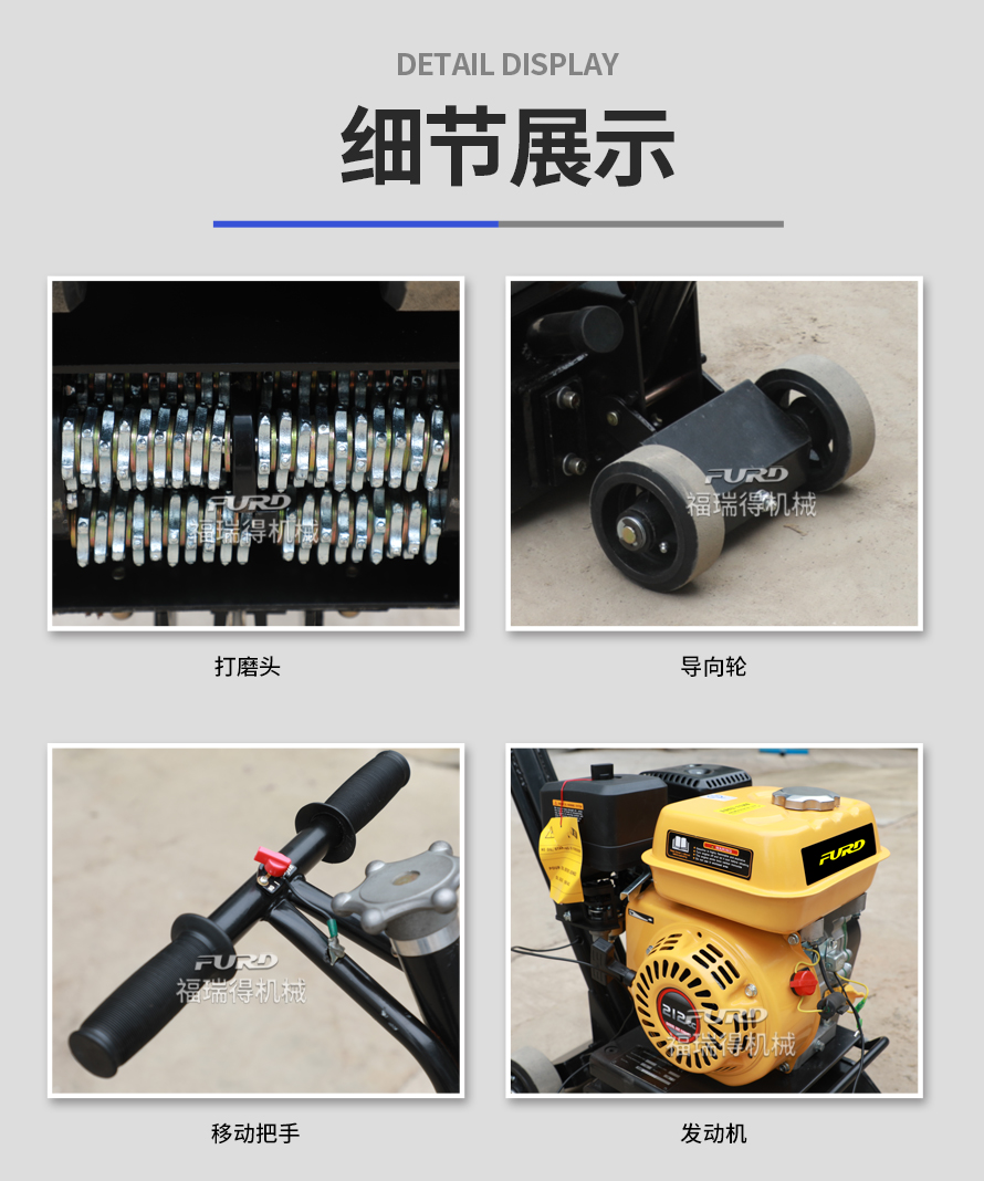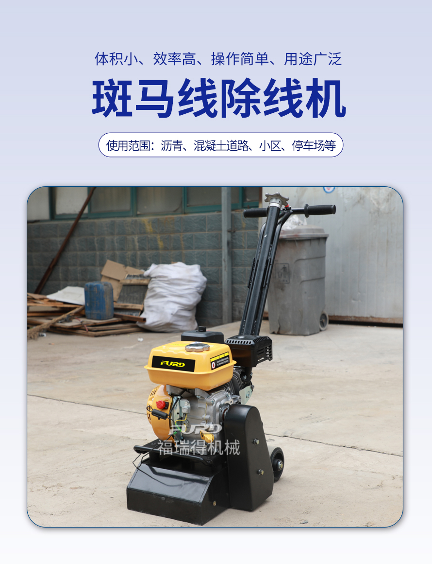特点:体积小、重量轻、机动灵活、工作效率高、操作简单。 适应范围:主要用于沥青道路、混凝土道路、物业小区、机场、停车场等地的标线清除。