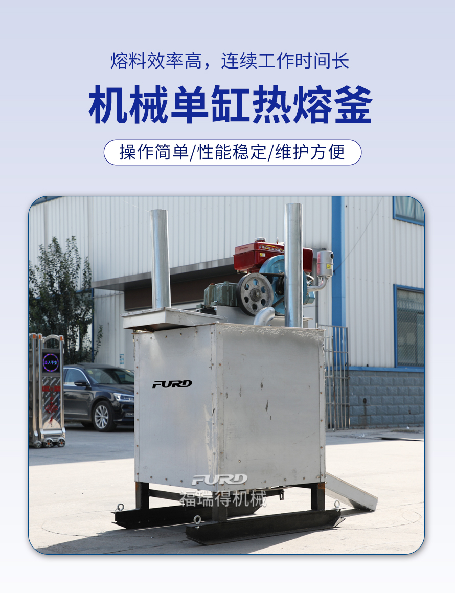 300L机械单缸热熔釜,具有质量轻、体积小、运输方便等特点。主要适用于停车场、物业小区、工厂企业、码头等小型工程施工。