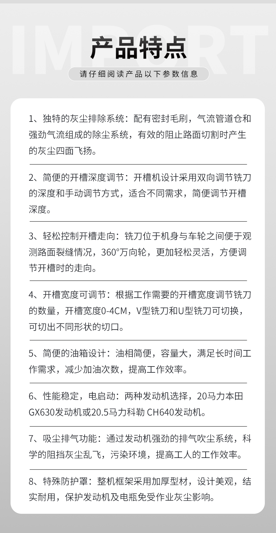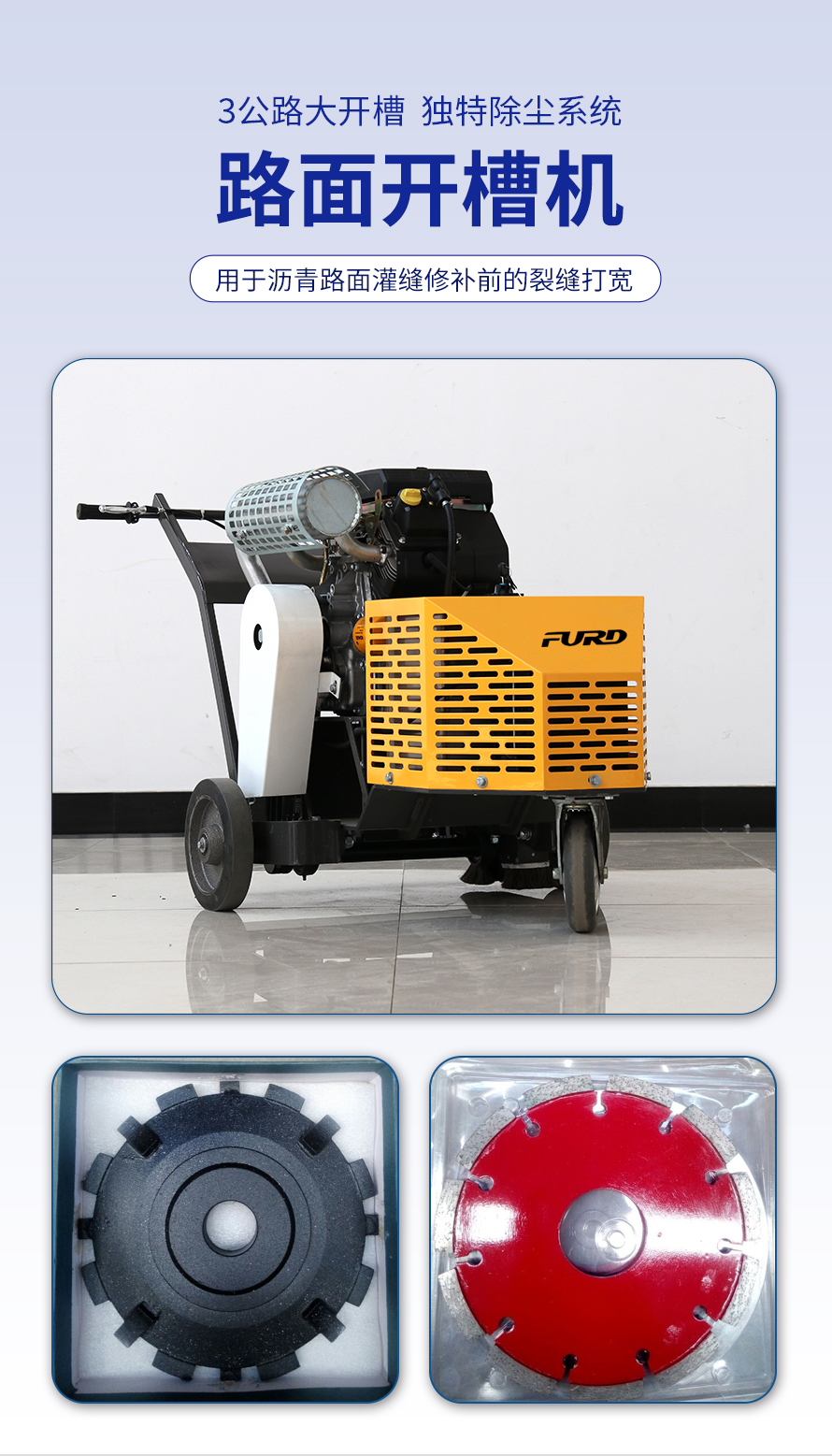 适用于沥青路面灌缝修补前的裂缝打宽。该设备具有使用方便,扩缝速度快,刀片使用寿命长,扩缝宽度可调等优点