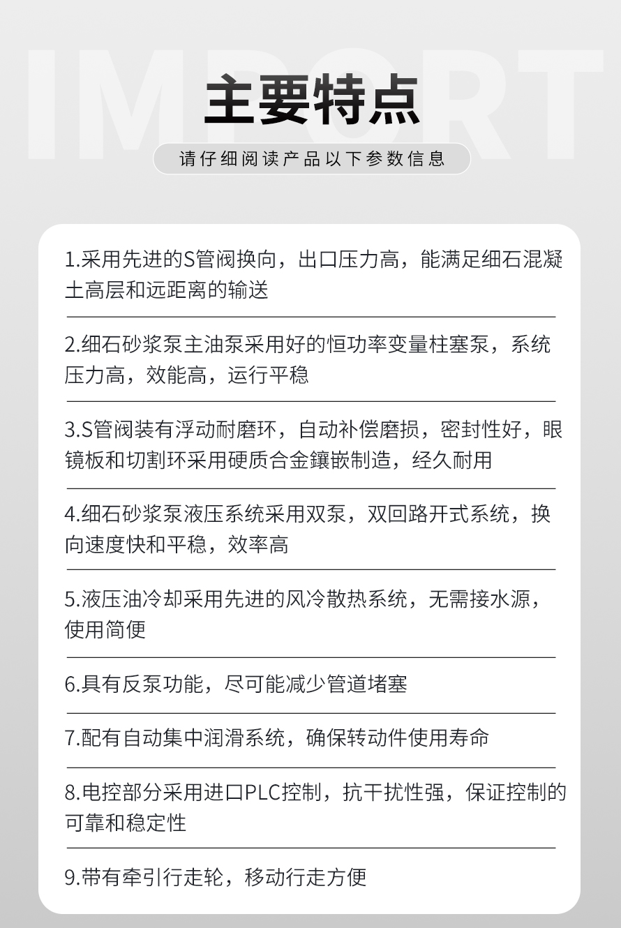 25型二次构造柱专用输送泵是一种复合泵送要求的混凝土泵,通过水平或垂直安装的管道,连续输送到浇注现场的细石混凝土输送设备。 广泛应用于二次构造柱填充、地暖工程、屋面、高层建筑的墙、水库、水电站、港口、码头、基础处理 软弱地基 加固注浆 隧
