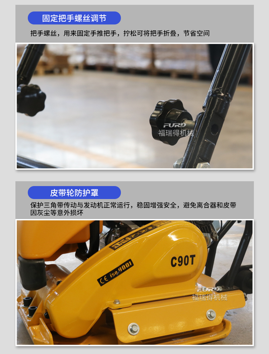 适用于路基边缘、桥涵、管道、沟槽底部等狭长地带的压实。 本田汽油动力,名牌品质保证。