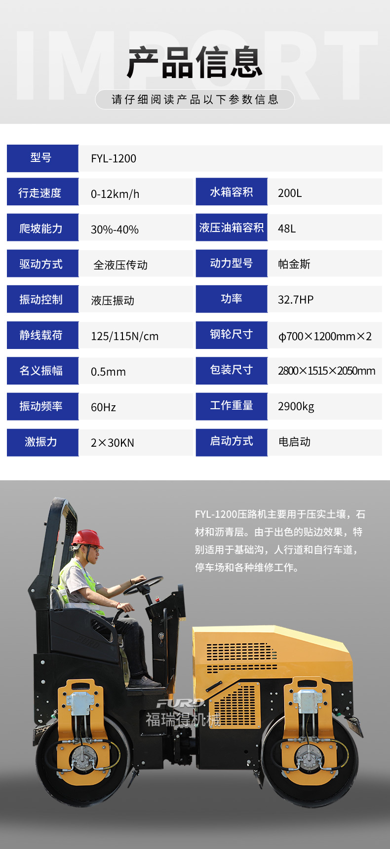 FYL-1200  3吨全液压座驾振动压路机