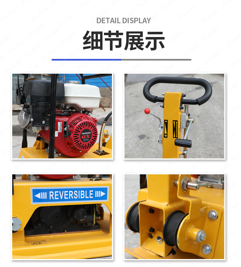 适用于路基边缘、桥涵、管道、沟槽底部等狭长地带的压实。 本田汽油动力,名牌品质保证。