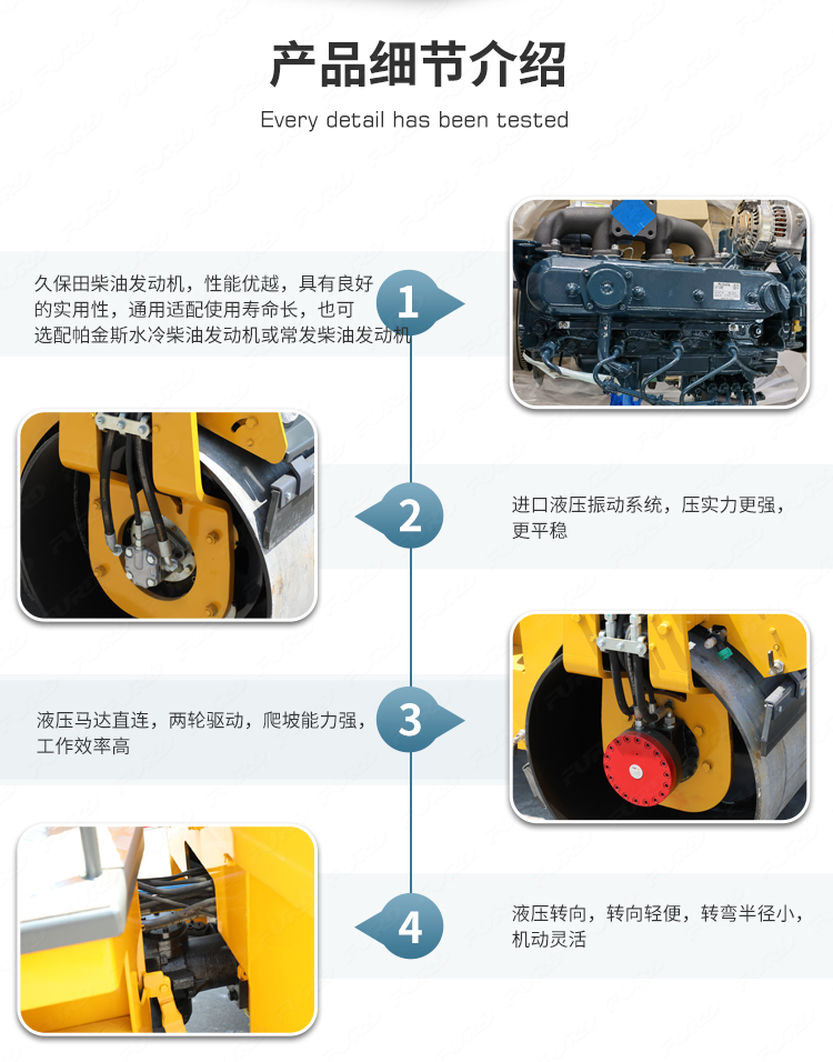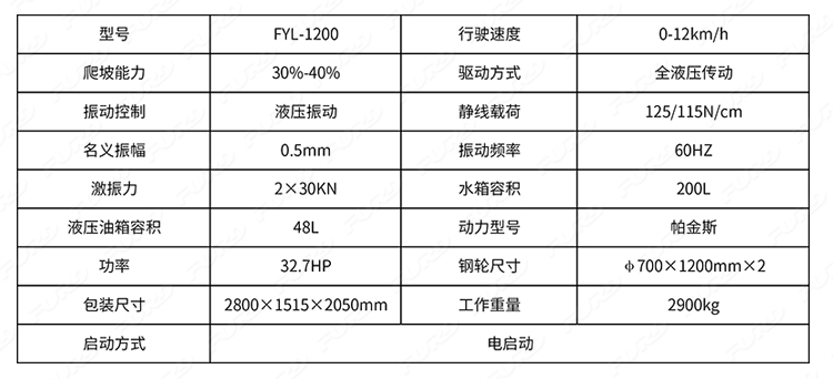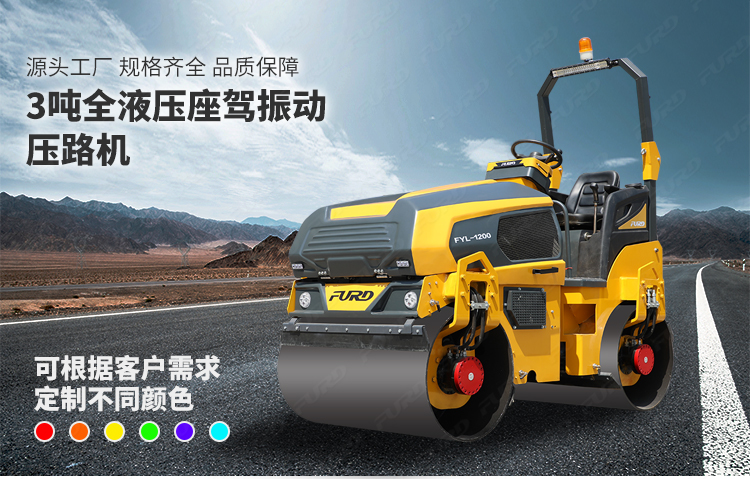 FYL-1200是3吨振动压路机,采用全液压传动,双鼓液压驱动,液压转向和液压振动。双鼓振动压路机